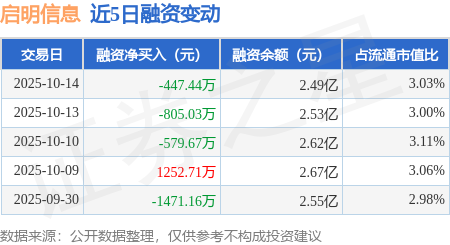 证券之星消息,10月14日,启明信息(002232)融资买入1650.85万元,融资偿还2098.29万元,融资净卖出447.44万元,融资余额2.49亿元。