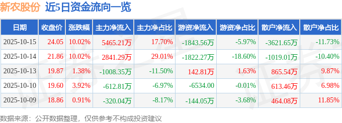 10月15日的资金流向数据方面,主力资金净流入5465.21万元,占总成交额17.7%,游资资金净流出1843.56万元,占总成交额5.97%,散户资金净流出3621.65万元,占总成交额11.73%。