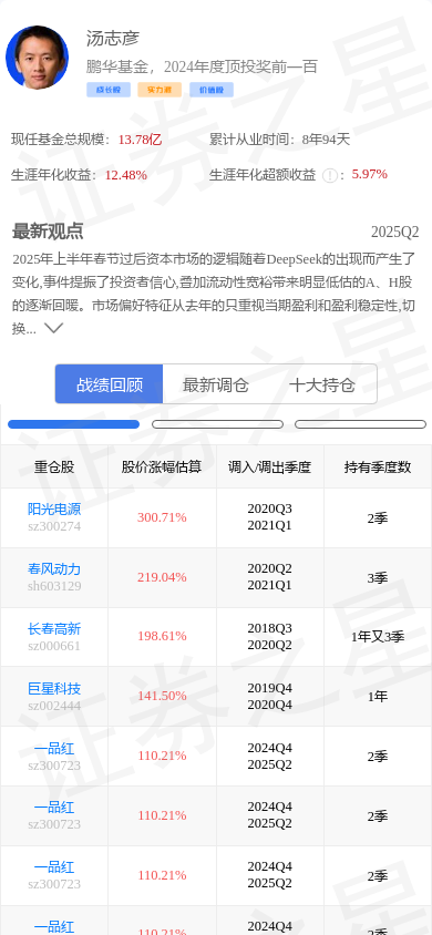 在最新基金报告期内,汤志彦有以下调仓(附大佬持仓 - 最新调仓截图):