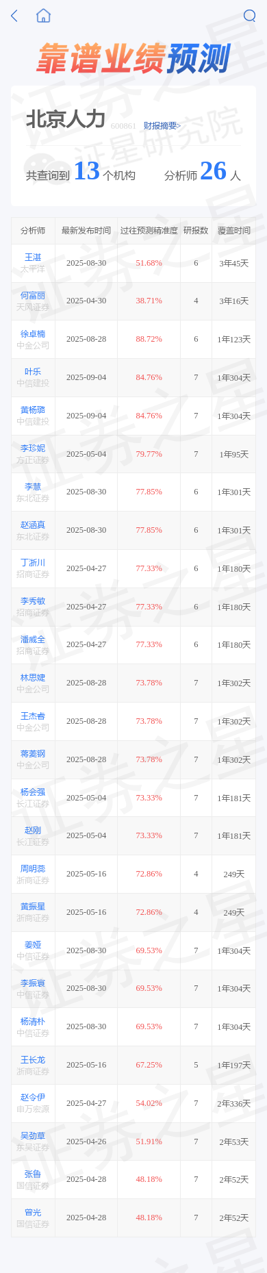 北京人力(600861)是基金经理汤志彦的重仓股。,其在整个职业生涯内年化收益高达12.48%。汤志彦的大佬持仓 - 战绩回顾截图如下: