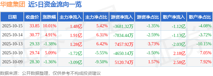 证券之星消息,华建集团10月15日涨停收盘,收盘价33.85元。该股于13点41分涨停,1次打开涨停,截止收盘封单资金为7040.41万元,占其流通市值0.22%。