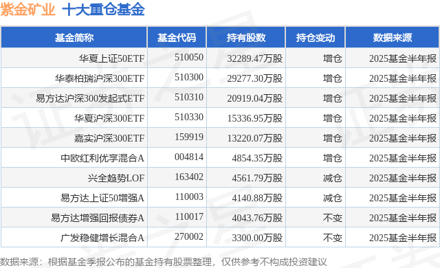 根据2025基金半年报公募基金重仓股数据,重仓该股的公募基金共1142家,其中持有数量最多的公募基金为华夏基金的华夏上证50ETF。华夏上证50ETF目前规模为654.44亿元,最新净值3.0966(10月14日),较上一交易日下跌0.21%,近一年上涨11.65%。该公募基金现任基金经理为徐猛。徐猛在任的基金产品包括:华夏恒生ETF联接A,管理时间为2015年12月21日至今,期间收益率为48.4%;华夏恒生ETF(QDII),管理时间为2015年12月21日至今,期间收益率为52.83%;华夏上证50ETF联接A,管理时间为2016年12月1日至今,期间收益率为42.03%;
