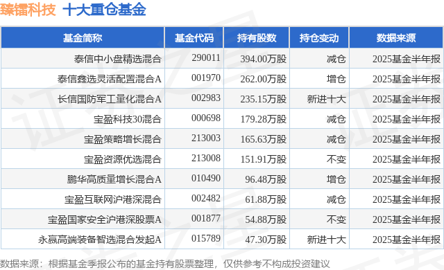 根据2025基金半年报公募基金重仓股数据,重仓该股的公募基金共17家,其中持有数量最多的公募基金为泰信基金的泰信中小盘精选混合。泰信中小盘精选混合目前规模为18.36亿元,最新净值4.439(10月14日),较上一交易日下跌3.14%,近一年上涨66.19%。该公募基金现任基金经理为董季周。董季周在任的基金产品包括:泰信鑫选灵活配置混合A,管理时间为2020年11月24日至今,期间收益率为17.66%。