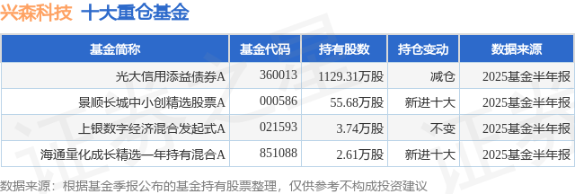 根据2025基金半年报公募基金重仓股数据,重仓该股的公募基金共4家,其中持有数量最多的公募基金为光大保德信基金的光大信用添益债券A。光大信用添益债券A目前规模为41.68亿元,最新净值1.239(10月14日),较上一交易日下跌0.56%,近一年上涨34.24%。该公募基金现任基金经理为黄波。黄波在任的基金产品包括:光大中高等级债券A,管理时间为2019年10月9日至今,期间收益率为66.18%;光大安祺债券A,管理时间为2019年10月9日至今,期间收益率为31.38%;光大增利收益债券A,管理时间为2019年10月9日至今,期间收益率为46.43%;