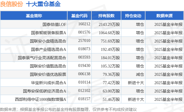根据2025基金半年报公募基金重仓股数据,重仓该股的公募基金共18家,其中持有数量最多的公募基金为国泰基金的国泰估值LOF。国泰估值LOF目前规模为10.83亿元,最新净值3.9966(10月14日),较上一交易日下跌4.61%,近一年上涨57.76%。该公募基金现任基金经理为王兆祥。