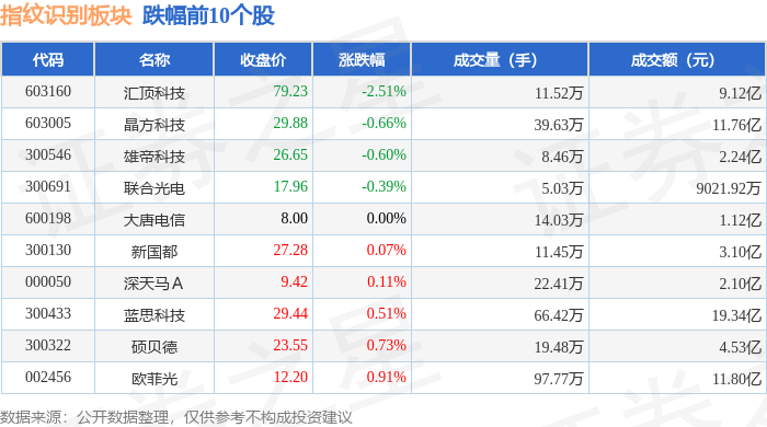 证券之星消息,10月15日指纹识别板块较上一交易日上涨1.86%,东田微领涨。当日上证指数报收于3912.21,上涨1.22%。深证成指报收于13118.75,上涨1.73%。指纹识别板块个股涨跌见下表: