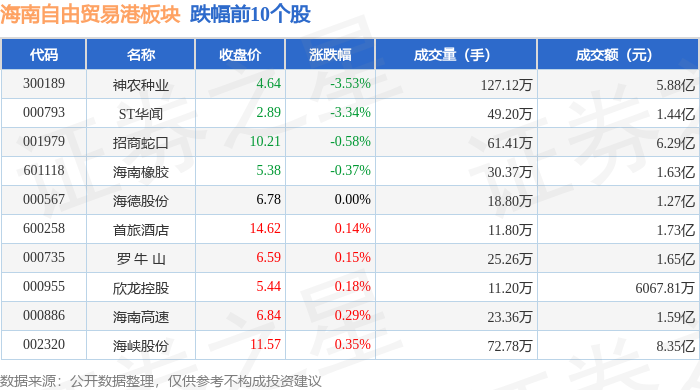 从资金流向上来看,当日海南自由贸易港板块主力资金净流入2.18亿元,游资资金净流出6906.67万元,散户资金净流出1.49亿元。海南自由贸易港板块个股资金流向见下表: