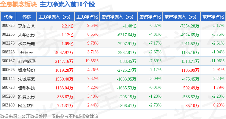 从资金流向上来看,当日全息概念板块主力资金净流出2.84亿元,游资资金净流出1.72亿元,散户资金净流入4.57亿元。全息概念板块个股资金流向见下表: