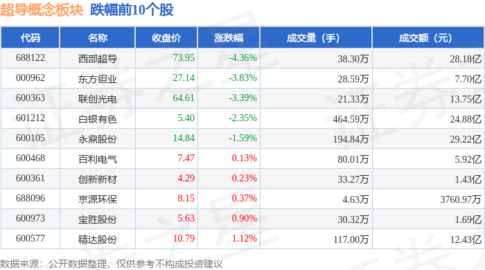 从资金流向上来看,当日超导概念板块主力资金净流出4.73亿元,游资资金净流入1.08亿元,散户资金净流入3.64亿元。超导概念板块个股资金流向见下表: