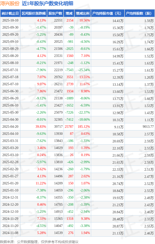 从股价来看,2025年9月30日至2025年10月10日,浔兴股份区间涨幅为4.13%,在此期间股东户数增加2154.0户,增幅为10.56%。