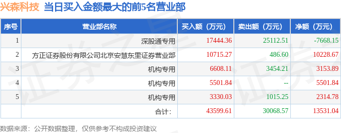 证券之星消息,沪深交易所2025年10月15日公布的交易公开信息显示,兴森科技(002436)因日涨幅偏离值达到7%的前5只证券登上龙虎榜。此次是近5个交易日内第1次上榜。