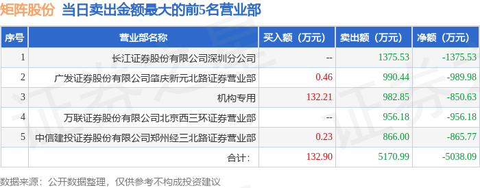 从龙虎榜公布的当日买卖数据来看,机构合计净卖出173.47万元。炒股养家等知名游资榜上有名。(知名游资炒股养家一般指华鑫证券有限责任公司上海宛平南路证券营业部席位,根据市场资料整理,仅供参考)