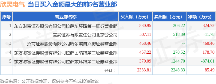 证券之星消息,沪深交易所2025年10月15日公布的交易公开信息显示,欣灵电气(301388)因日换手率达到30%的前5只证券登上龙虎榜。此次是近5个交易日内第2次上榜。