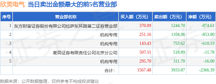 从龙虎榜公布的当日买卖数据来看,机构合计净卖出1479.99万元。