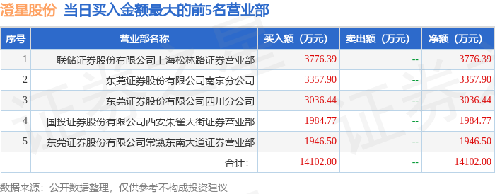 从龙虎榜公布的当日买卖数据来看,上海松林路、朱雀大街等知名游资榜上有名。(知名游资上海松林路一般指联储证券股份有限公司上海松林路证券营业部席位、知名游资朱雀大街一般指国投证券股份有限公司西安朱雀大街证券营业部席位,根据市场资料整理,仅供参考)