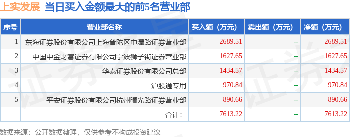 从龙虎榜公布的当日买卖数据来看,北向资金合计净买入319.69万元。