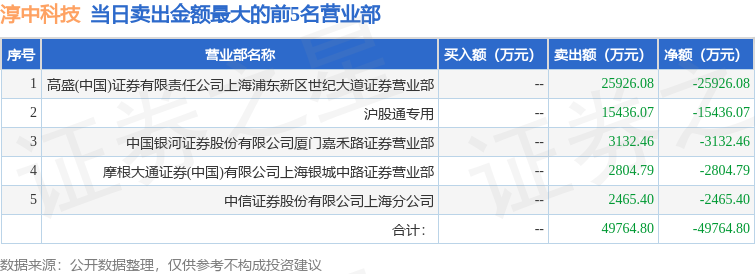 证券之星消息,沪深交易所2025年10月15日公布的交易公开信息显示,淳中科技(603516)因有价格涨跌幅限制的日收盘价格跌幅偏离值达到7%的前五只证券登上龙虎榜。此次是近5个交易日内第3次上榜。