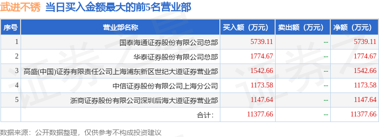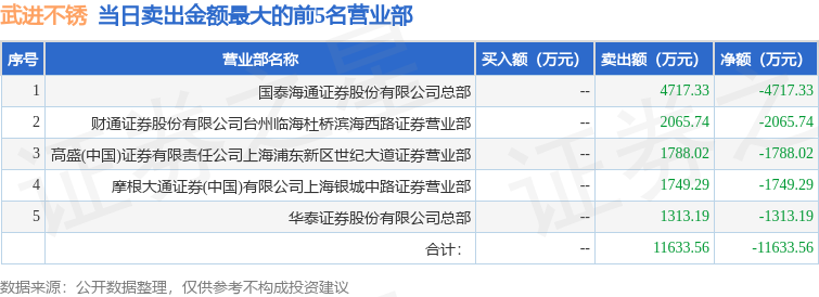 证券之星消息,沪深交易所2025年10月15日公布的交易公开信息显示,武进不锈(603878)因有价格涨跌幅限制的日价格振幅达到15%的前五只证券登上龙虎榜。此次是近5个交易日内第1次上榜。