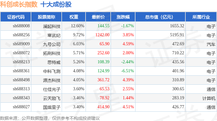 证券之星消息,10月15日,科创成长(000690)指数报收于1732.07点,涨1.32%,成交377.55亿元,换手率2.66%。当日该指数成份股中,上涨的有40家,臻镭科技以5.27%的涨幅领涨,下跌的有10家,中科飞测以6.51%的跌幅领跌。