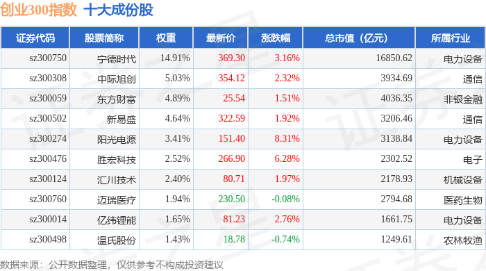 创业300(399012)指数十大成份股详情如下: