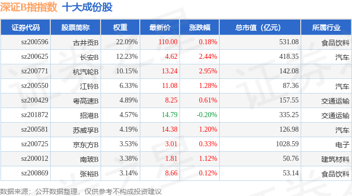 深证B指(399108)指数十大成份股详情如下: