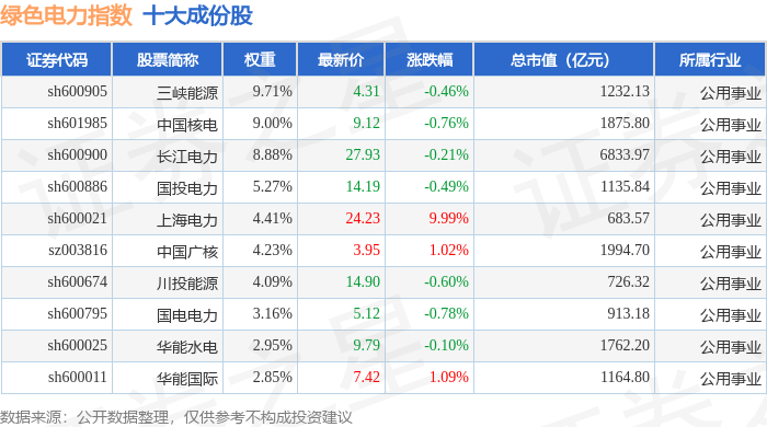 资金流向方面,绿色电力(399438)指数成份股当日主力资金净流入合计4.84亿元,游资资金净流出合计2.18亿元,散户资金净流出合计2.66亿元。成份股资金流向详情见下表:
