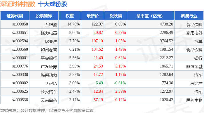 证券之星消息,10月15日,深证时钟(399644)指数报收于3615.68点,涨0.9%,成交760.0亿元,换手率2.28%。当日该指数成份股中,上涨的有76家,中通客车以10.04%的涨幅领涨,下跌的有18家,中兵红箭以2.33%的跌幅领跌。