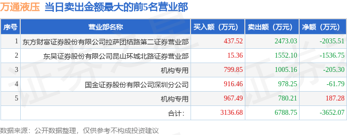 截至2025年10月15日收盘,万通液压(920839)报收于58.9元,上涨21.67%,换手率14.02%,成交量9.26万手,成交额5.05亿元。