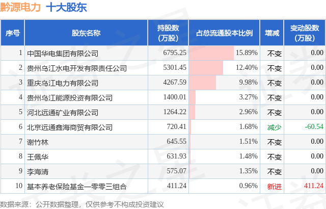 根据黔源电力2025年中报公布的十大股东详情如下: