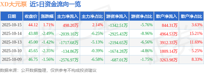 证券之星消息,截至2025年10月15日收盘,XD大元泵(603757)报收于44.12元,上涨1.71%,换手率2.88%,成交量5.37万手,成交额2.33亿元。