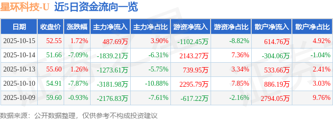 证券之星消息,截至2025年10月15日收盘,星环科技(688031)报收于52.55元,上涨1.72%,换手率2.55%,成交量2.4万手,成交额1.25亿元。