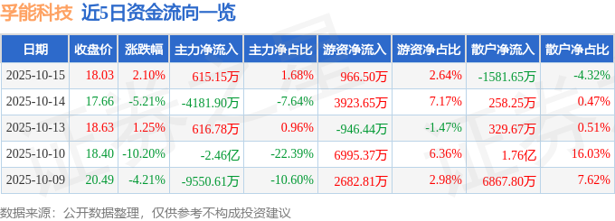 证券之星消息,截至2025年10月15日收盘,孚能科技(688567)报收于18.03元,上涨2.1%,换手率1.68%,成交量20.55万手,成交额3.66亿元。