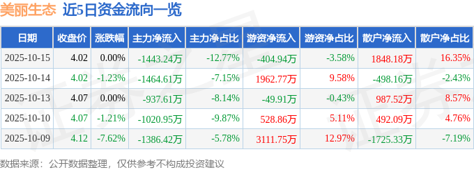证券之星消息,截至2025年10月15日收盘,美丽生态(000010)报收于4.02元,上涨0.0%,换手率3.64%,成交量28.43万手,成交额1.13亿元。