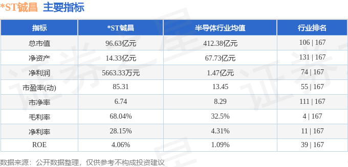 *ST铖昌2025年中报显示,公司主营收入2.01亿元,同比上升180.16%;归母净利润5663.33万元,同比上升333.23%;扣非净利润5478.74万元,同比上升262.58%;其中2025年第二季度,公司单季度主营收入1.09亿元,同比上升109.83%;单季度归母净利润2681.75万元,同比上升385.92%;单季度扣非净利润2596.14万元,同比上升250.4%;负债率6.22%,投资收益46.65万元,财务费用-66.41万元,毛利率68.04%。*ST铖昌(001270)主营业务:微波毫米波相控阵T/R芯片(以下简称“T/R芯片”)的研发、生产、销售和技术服务,主要向市场提供基于硅基、砷化镓以及第三代半导体氮化镓工艺的系列化产品以及相关的技术解决方案。