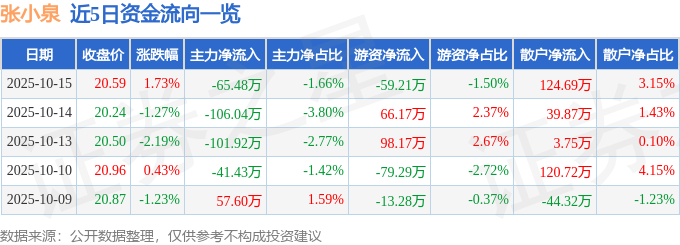 证券之星消息,截至2025年10月15日收盘,张小泉(301055)报收于20.59元,上涨1.73%,换手率1.24%,成交量1.93万手,成交额3954.49万元。