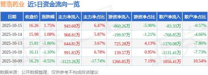 证券之星消息,截至2025年10月15日收盘,普洛药业(000739)报收于16.26元,上涨1.75%,换手率0.78%,成交量9.0万手,成交额1.46亿元。