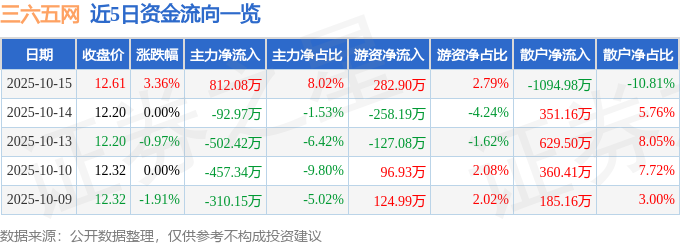 证券之星消息,截至2025年10月15日收盘,三六五网(300295)报收于12.61元,上涨3.36%,换手率4.83%,成交量8.1万手,成交额1.01亿元。
