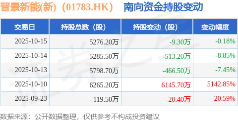 证券之星消息,10月15日南向资金减持9.3万股晋景新能(新)(01783.HK)。近5个交易日中,获南向资金增持的有2天,累计净增持5177.1万股。截至目前,南向资金持有晋景新能(新)(01783.HK)5276.2万股,占公司已发行普通股的1.9%。
