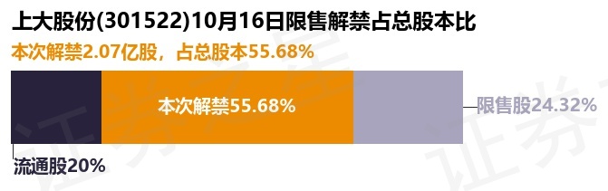 证券之星消息,根据市场公开信息整理,上大股份(301522)于10月16日将有2.07亿股限售股份解禁,为公司首发原股东限售股份,首发战略配售股份,占公司总股本55.68%。(本次数据根据历史公告整理得出,实际情况以上市公司最新公告为准)最近一年内,该股累计解禁372.28万股,占总股本的1.0%。本次解禁后,公司还有9045.0万股限售股份,占总股本24.32%。具体如下图所示: