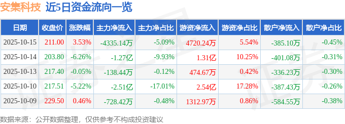 证券之星消息,截至2025年10月15日收盘,安集科技(688019)报收于211.0元,上涨3.53%,换手率2.44%,成交量4.11万手,成交额8.52亿元。