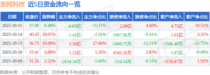 10月15日的资金流向数据方面,主力资金净流出6.83亿元,占总成交额15.11%,游资资金净流入2.08亿元,占总成交额4.6%,散户资金净流入4.75亿元,占总成交额10.51%。