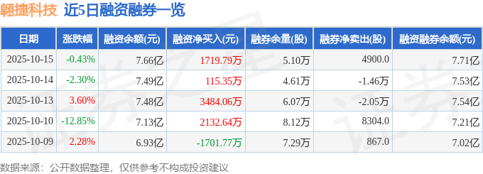 翱捷科技融资融券信息显示,融资方面,当日融资买入9903.98万元,融资偿还8184.19万元,融资净买入1719.79万元,连续3日净买入累计5319.2万元。融券方面,融券卖出5100.0股,融券偿还200.0股,融券余量5.1万股,融券余额506.63万元。融资融券余额7.71亿元。