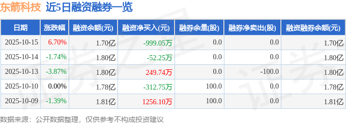 证券之星消息,截至2025年10月15日收盘,东箭科技(300978)报收于11.46元,上涨6.7%,换手率8.63%,成交量16.5万手,成交额1.86亿元。