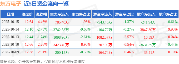 10月15日的资金流向数据方面,主力资金净流入785.4万元,占总成交额1.98%,游资资金净流出543.46万元,占总成交额1.37%,散户资金净流出241.94万元,占总成交额0.61%。