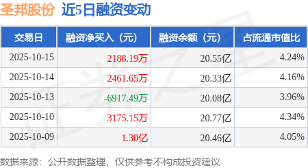 证券之星消息,10月15日,圣邦股份(300661)融资买入2.76亿元,融资偿还2.54亿元,融资净买入2188.19万元,融资余额20.55亿元,近20个交易日中有14个交易日出现融资净买入。
