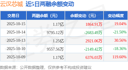证券之星消息,10月15日,云汉芯城(301563)融资买入5310.23万元,融资偿还3445.32万元,融资净买入1864.91万元,融资余额1.17亿元。