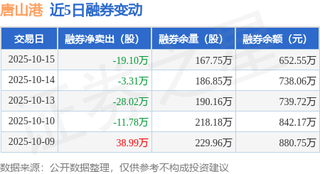证券之星消息,10月15日,唐山港(601000)融资买入1245.91万元,融资偿还982.92万元,融资净买入262.99万元,融资余额1.67亿元,近20个交易日中有13个交易日出现融资净买入。