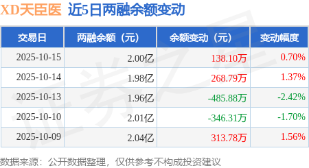 证券之星消息,10月15日,XD天臣医(688013)融资买入832.66万元,融资偿还694.56万元,融资净买入138.1万元,融资余额2.0亿元,近20个交易日中有13个交易日出现融资净买入。