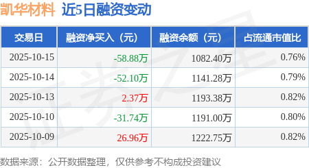 证券之星消息,10月15日,凯华材料(920526)融资买入37.45万元,融资偿还96.33万元,融资净卖出58.88万元,融资余额1082.4万元。