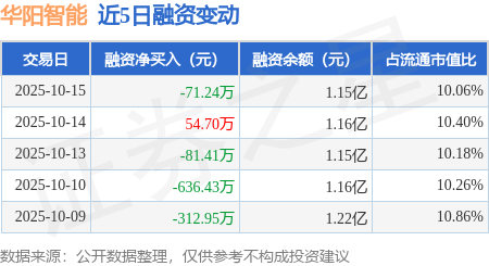证券之星消息,10月15日,华阳智能(301502)融资买入441.84万元,融资偿还513.08万元,融资净卖出71.24万元,融资余额1.15亿元。
